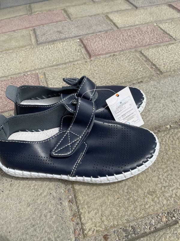 Верх экокожа, гибкая подошва. Стелька кожаная с супинатором, есть липучка 28 размер -17,5 см 30-19 см ( ціна 180 , вигорівша підошва)