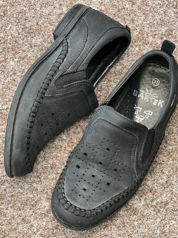 Кожаные туфли бартер для мальчика в размере 32. Стан очень красивый, имеют черно-серый цвет. Удобные.