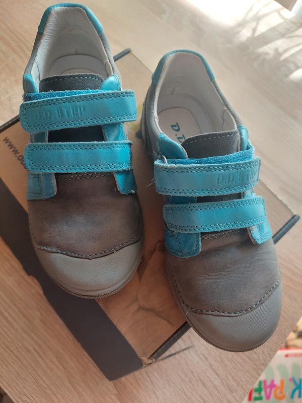 Шкіряні туфлі для хлопчика фірми D.D.Step в ідеальному стані, носили дуже мало, колір сірий, липучки блакитні. Легенькі і м'якеньки.