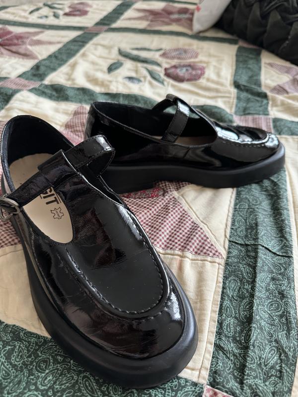 Лаковані туфлі, стан нових. Шкіра ніде не подерта, мʼяка. По устілках не видно, що були у користуванні. Є незначні сліди носіння на підошві. Шкіра без подряпин, на фото відблиск.