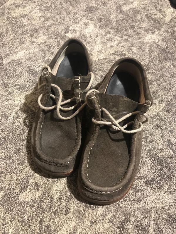 добротные замшевые туфли темно коричневого цвета, в середине текстиль размер не указан , но носили на 36-37 , фото стельки есть. Цвет как на первых двух фото модель очень удобная