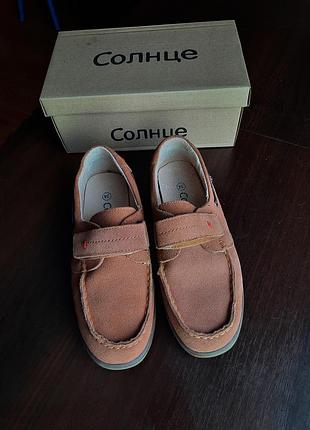 Детские туфли на мальчика Верх - натуральный замш Внутри – натуральная кожа Кожаная стелька с супинатором Купили летом на осень, одети 2 раза, оказалось что они стали замалы