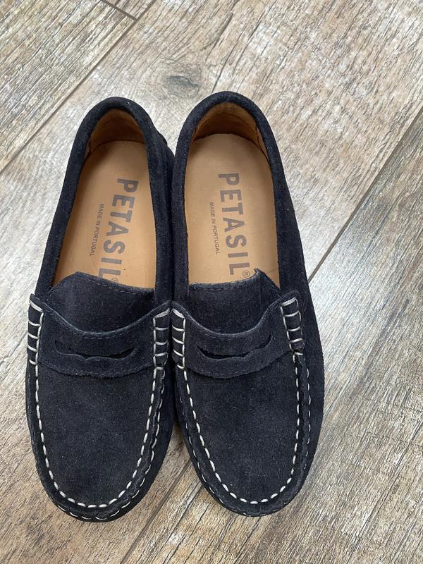 Лоферы новые. Малыш не носил. Натуральная замша, качественные, мягкие. Можно для школы, на выход. Цвет темно-синий. Португалия. Размер 31, но маломерят. На стопу 18-18,5 По стельке 19.