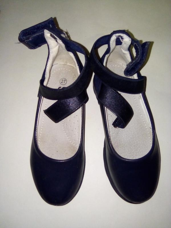 Туфли Yalike для девочки на липучке.Темно-синего цвета.