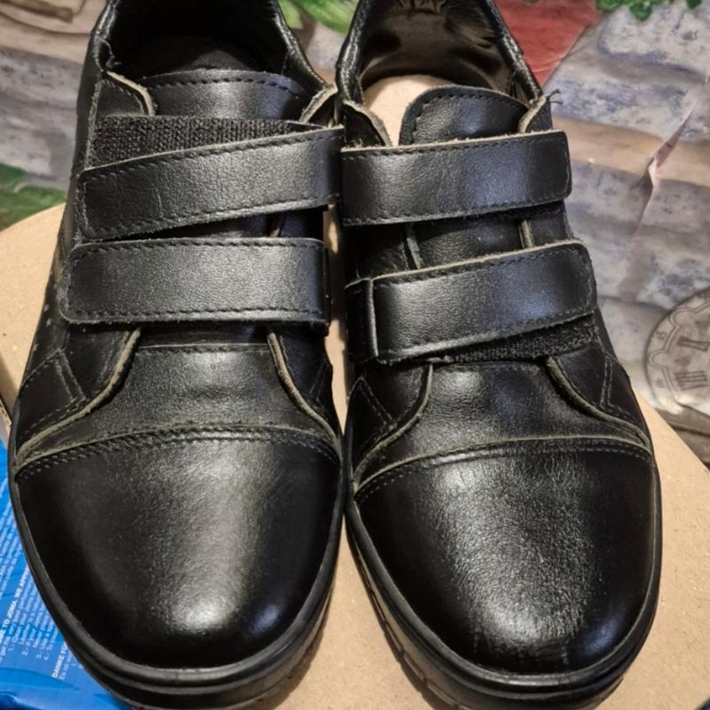 Практически новые кожаные туфли на мальчика. Взывали только раз в 1 сентября, но есть незначительные царапины на одной тапочке