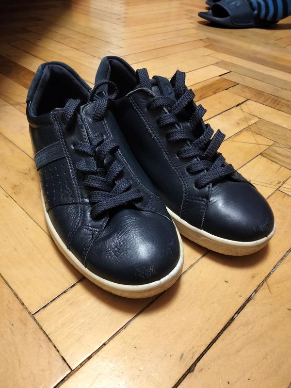 Туфли для мальчика, бренд ecco, стелька 23,5 см, синие, на шнурках, натуральная кожа