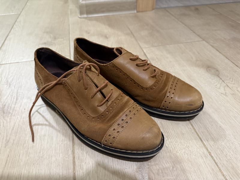 Шкіряні лофери іспанського бренду 39 розмір Стопа 25 см довжини і 8 см ширини Колір темно гірчичний.