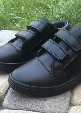 Дитячі туфлі для хлопчиків. Ідеально підходить для школи. Колір: чорний На липучках Матеріал: натуральна шкіра Розміри: 32 (21 см )