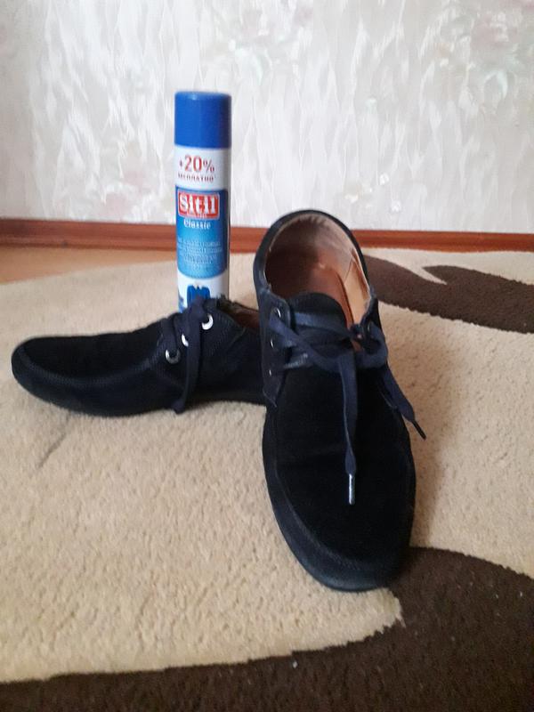 туфлі чоловічі (можна для підлітка), р.40, натуральний замш, темносинього кольору, на додаток крем-фарба для догляду за взуттям із замшу.