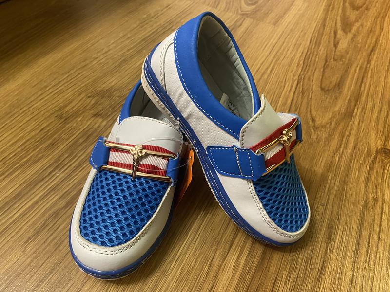 Нові туфлі/макасини для хлопчика на липучці. Верх штучна шкіра, сітка із тканини, підошва гума, устілка із ступінатором. Чудовий варіант на змінне взуття. В наявності залишився 26,27,28,29,30 розмір. За необхідності скину додаткові фото та заміри. Відправлю.