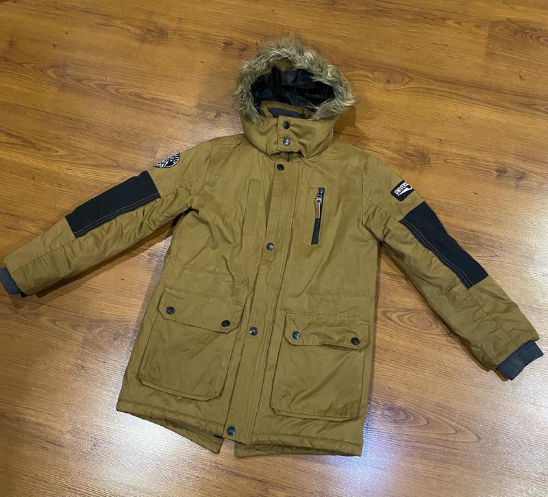Сильна та тепла куртка-парка від бренду Reserved у розмірі 140 см. Ідеально підійде для осінньо-зимового сезону. Стан: Куртка в гарному загальному стані, але є нюанс: розходиться основна блискавка (потребує ремонту або заміни бігунка). Всі інші деталі, включаючи кнопки та манжети, цілі, без плям та нюансів! Бренд: Reserved Розмір: 140 см Колір: Верблюжий / коричневий з чорними елементами Склад матеріалу: 46% поліестер, 42% бавовна, 12% поліамідне волокно Особливості: Зручний капюшон зі штучним хутром, кишені, нашивки на рукавах, має манжети та затягується на талії з середини Заміри: Груди 44см Рукав від шиї 59см + 2см манжет Довжина по спинці 70см, зпереду 64см Плечі 38см