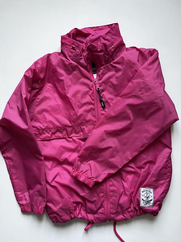 Яркая ветровка для девочки на 8 лет. Имеет котоновую подкладку и скрытый капюшон на воротнике. Без нюансов длина по спинке 52 рукав 46 пог 44