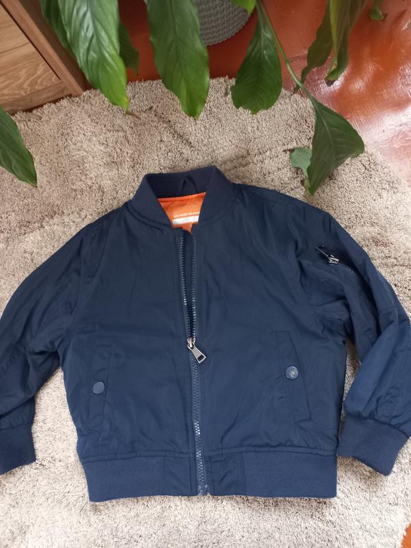 бомбер primark на возраст 3-4 года в красивом состоянии,темно синего цвета, и один нюанс(на фото виден)но при носке незаметен