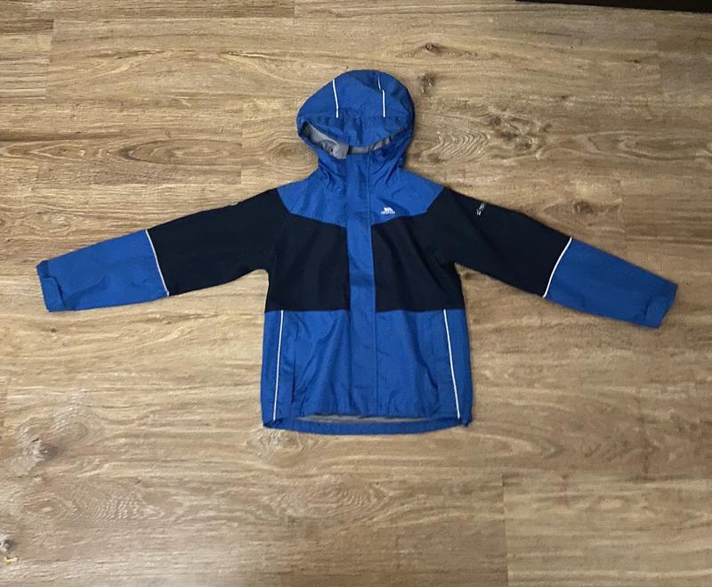 Класна, вітровочка, на хлопчика, 7-8 років, в темно синьому, з синім кольорі. Відмінний варіант, на осінь 🍂, і весну. Красиво виглядає на фігурі. Брендовоі фірми: Trespass. Склад: 100% поліcтер. Заміри, з переді, довжина від плеча до низу 51 см. В полу обхваті грудей 42 см. на весь обхват 84 см. В полу обхваті, в талії 40 см. на весь обхват 80 см. Низ курточки, 40 см. в полу обхваті, на весь обхват 80 см. По бокам, є карманчики. Рукав, від шиї 60 см. Плечі з зади 44 см.