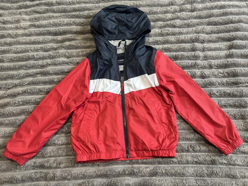 Вітрівка з плащівки в хорошу стані від бренду LC Waikiki . Розмір 116-122 см, на вік 6-7 років. Довжина рукава 44 см, довжина вітрівки 43 см, ширина -39 см. З великий каптур з коміром-стійкою, застібка на блискавку, дві кишені з боків