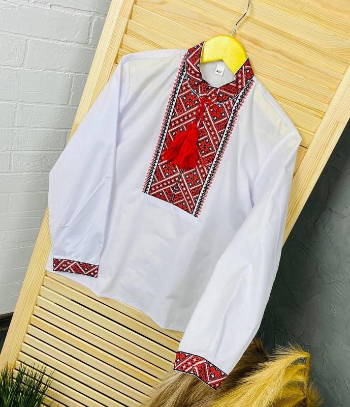 Колоритная, классическая вышиванка для мальчиков с длинным рукавом на кнопках Воротник стойка, перед вышит в патриотическом стиле. Изделие дополнено кисточками. Такая замечательная модель подойдет для повседневной носки и учебы. Отлично сочетается с брюками и джинсами Цена 510грн Размеры р116-3шт р134-3шт р146-3шт Замеры р116-рукав от шва 42 см, длина от горловины 49 см,н/о под руками 40 см р134-рукав от шва 47 см, длина от горловины 56 см,н/о под руками 44 см р140-рукав от шва 48 см, длина от горловины 57 см,н/о под руками 45 см р146-рукав от шва 50 см, длина от горловины 59 см,н/о под руками 46 см #вишиванки Для деталей и заказа ❤️🔥