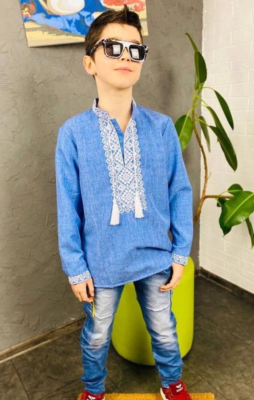 Колоритная, классическая вышиванка для мальчиков с длинным рукавом на кнопках Воротник стойка, перед вышит в патриотическом стиле. Изделие дополнено кисточками. Такая замечательная модель подойдет для повседневной носки и учебы. Отлично сочетается с брюками и джинсами Цена 510грн Размеры р116-3шт р134-3шт р146-3шт Замеры р116-рукав от шва 42 см, длина от горловины 49 см,н/о под руками 40 см р134-рукав от шва 47 см, длина от горловины 56 см,н/о под руками 44 см р140-рукав от шва 48 см, длина от горловины 57 см,н/о под руками 45 см р146-рукав от шва 50 см, длина от горловины 59 см,н/о под руками 46 см #вишиванки Для деталей и заказа ❤️🔥