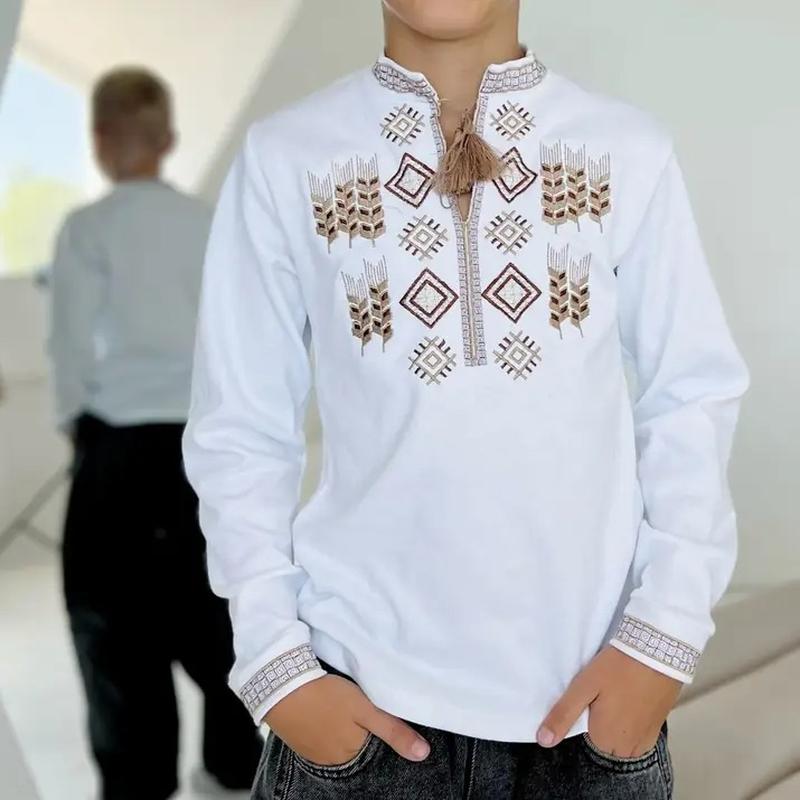цена зависит от размера: 92-300грн 98 -320грн 104 -330 грн 110 -340грн 116 -350грн 122 -360грн 128 -370грн 134 -380грн 140- 390грн 146 -400грн 152 -420грн. РАСМирная сетка Размер 98 104 110 116 122 Длина изделия от плеча, см 38 40 43 45 46 Длина рукава от плеча, см 32 34 37 38 41 Ширина по линии груди, см 30 31 32 32 33 Размер 128 134 140 146 152 Длина изделия от плеча, см 48 53 56 58 59 Длина рукава от плеча, см 45 48 52 53 55 Ширина по линии груди, см 34 35 38 39 41 ткань натуральная -хлопок наличие нужного размера -уточняйте Вышиванка для мальчика с длинными рукавами и качественной машинной вышивкой. Ткань интерлок(тянется). Оплата на карту (отправка укр.почтой,новой,мост) или наложенным платажом по подписке новой почтой