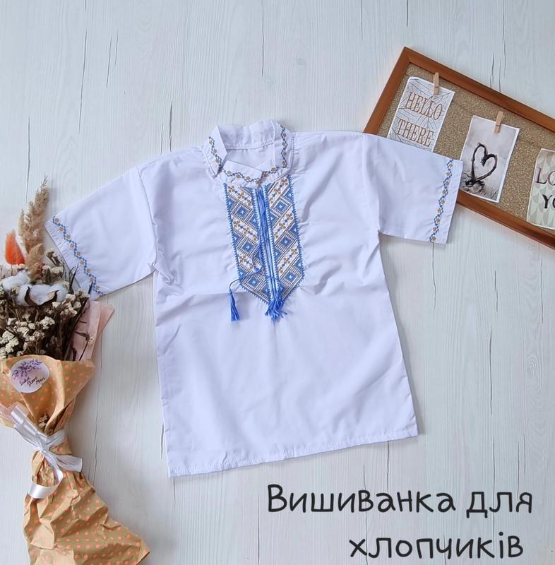 ВИШИВАНОЧКА ДЛЯ ХЛОПЧИКА ткань поплин, отличное качество, настоящая вышивка, не рисунок РЕКОМЕНДУЮ 128(1 шт)-длина 50, пог 36 134(1 шт)-длина 52,пог 37 140(1 шт)-длина 54,пог 39 152(1 шт)-длина 58, пог 42 +-1 см Цена 510 грн
