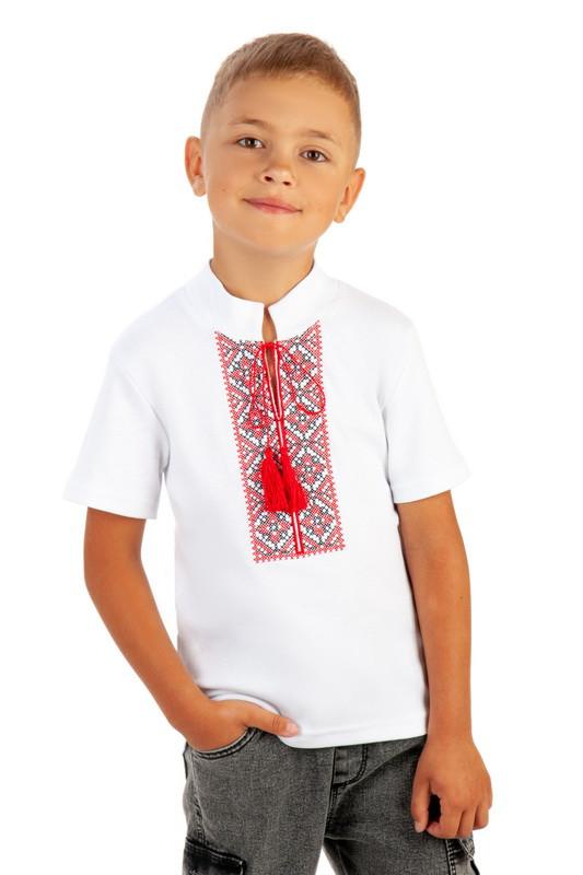 Размеры: 26-34 Декор: вышивка Полотно: интерлок Красивая нарядная вышиванка. Модель с коротким рукавом. Узор является тканым на машинке. Выполнена из приятного к телу трикотажного полотна "Интерлок" - 100% хлопок. Вышиванка приятная к телу, после стирки не деформируется и не меняет цвет, качество соответствует ДСТУ. Можно использовать и для повседневного использования. Состав: 100% хлопок. Вышитый орнамент: машинная вышивка Рекомендации по уходу: стирать при температуре не более 30°C. Допускается стирка в режиме "ручная" или "деликатное", вышивку гладить только по изнаночной стороне. Изделие может дать усадку.