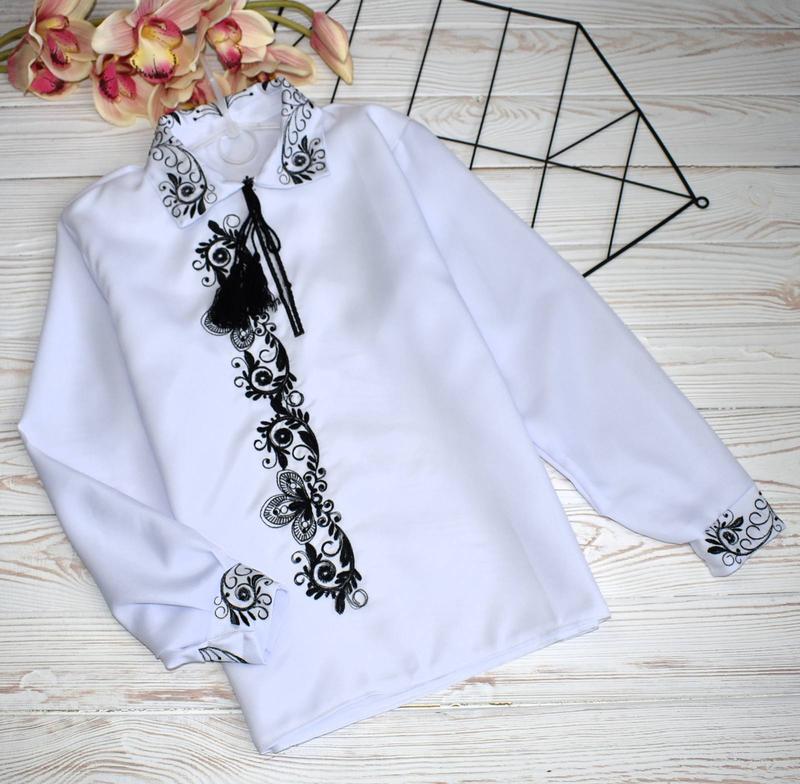 Выр-во: Украина ✅Тка-на: Габардин ✅Дополнительно: машинная вышивка. ✅СВЕРТАЕМ ВНИМАНИЕ НА ЗАМЕРЫ! Дополнительно: машинная вышивка. рукав может быть на липучке или на шнуровке ✅Замеры: длина/ширина/рукав от плеча. 116-51/39/42 122-52/40/44 128-53/42/46 134-53/43/46 140-56/44/48 146-59/45/51 152- 51/48/54 158- 64/49/57.
