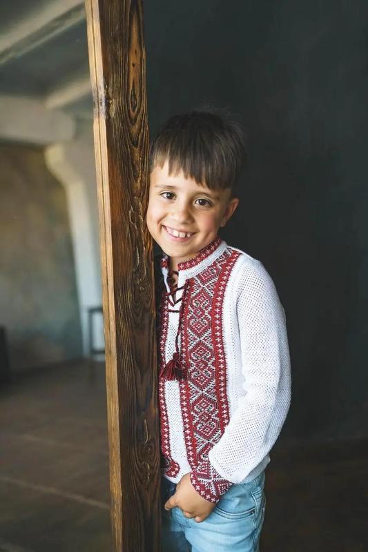 Легкий джемпер-вышиванка для мальчика с красным геометрическим орнаментом. Материал - хлопок. Стирать рекомендуется при 35-40с°. В наличии и под заказ.
