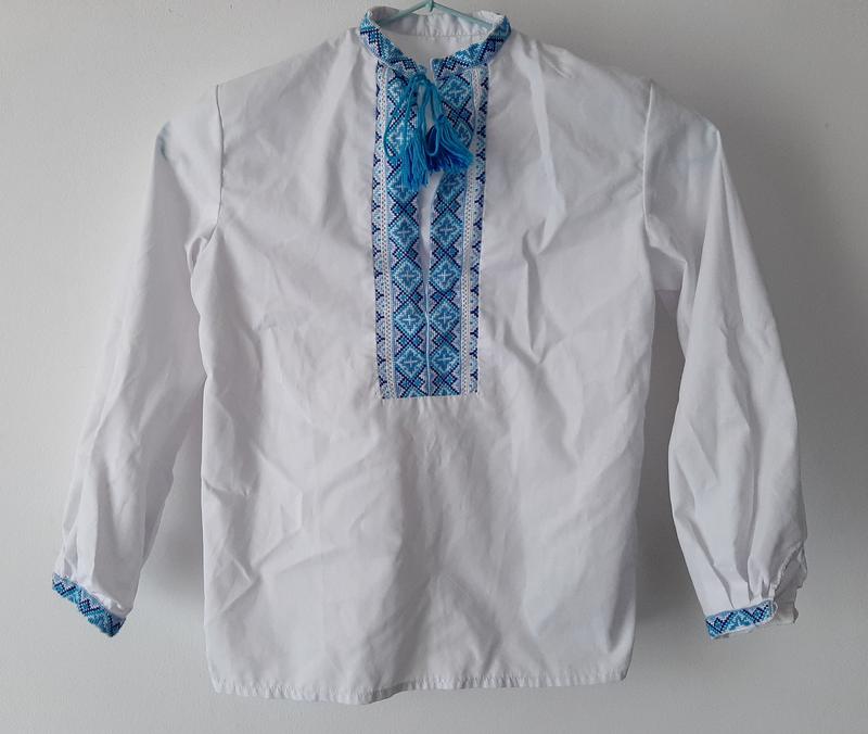 подойдет на мальчика 5-6 лет, ориентируйтесь по замерам: полуобхват по плечам 31 см полуобхват под руками 38 см длина вышиванки 50 см длина рукава по внешнему (верхнем) краю 40 см, по внутреннему (нижному) 33 см, ширина рукава в полуобхвате 8 см есть дефект - пятно на предостановочном фото, но ее видно лишь наизнанку (наблюдительно 6-7 фото)