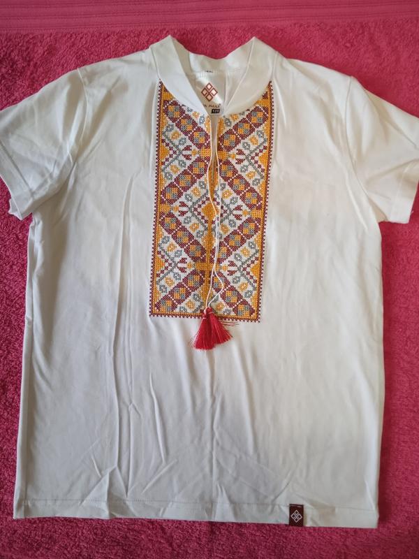 Вышиванка на мальчика, машинная вышивка, очень приятная тканая ткань на ощупь, рост 128,стан новый.