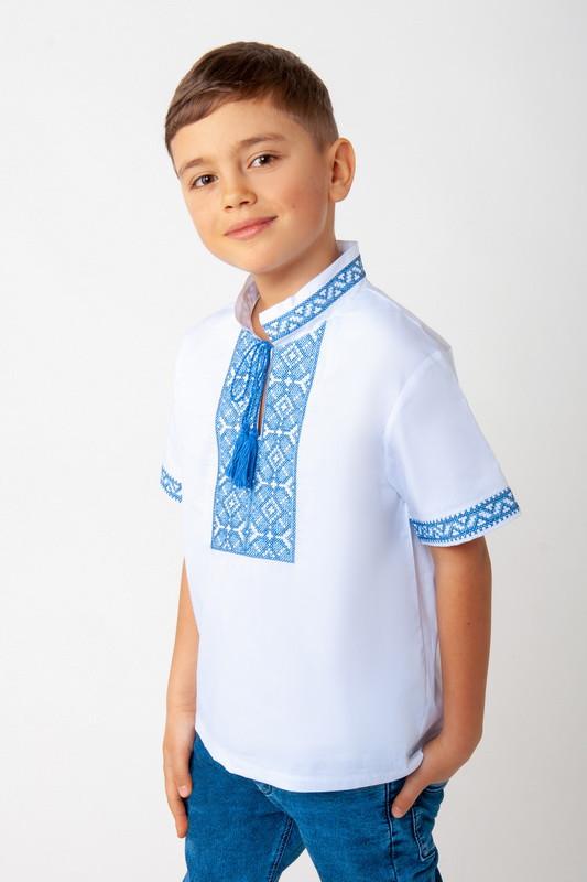 Белая вышиванка для мальчиков, вышитая рубашка для мальчика с голубой вышивкой орнаментом