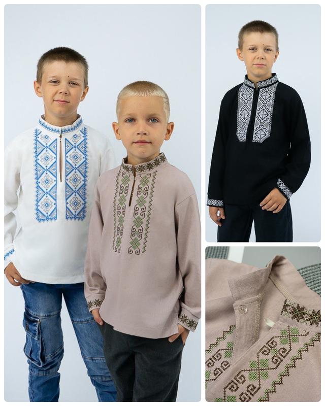 Льняная вышиванка для мальчиков подростков, подростковая вышитая рубашка с длинным рукавом...