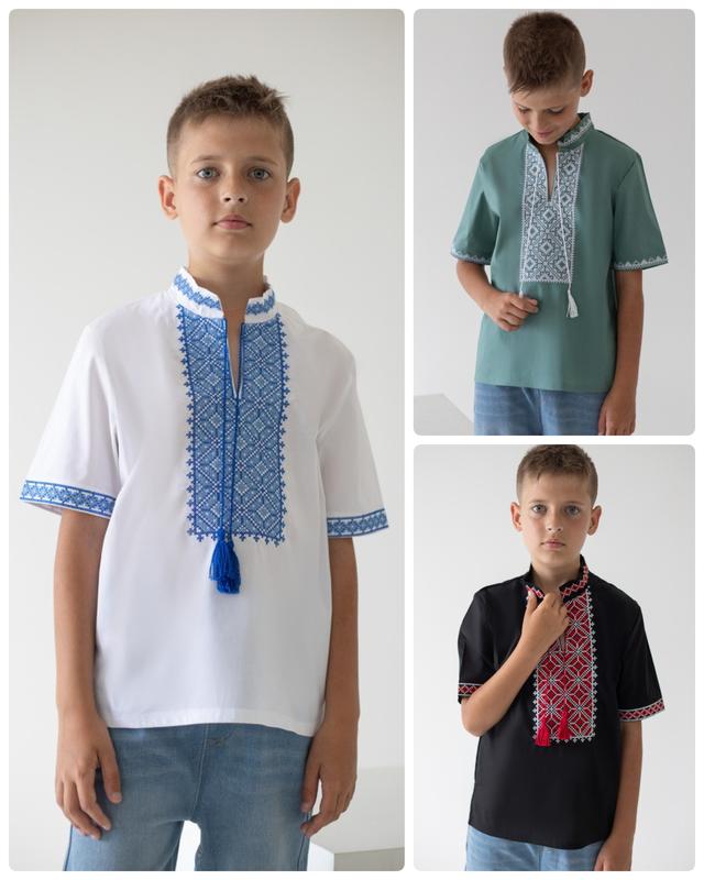 Вышиванка для мальчиков подростков, подростковая вышитая рубашка с коротким рукавом, рубаш...