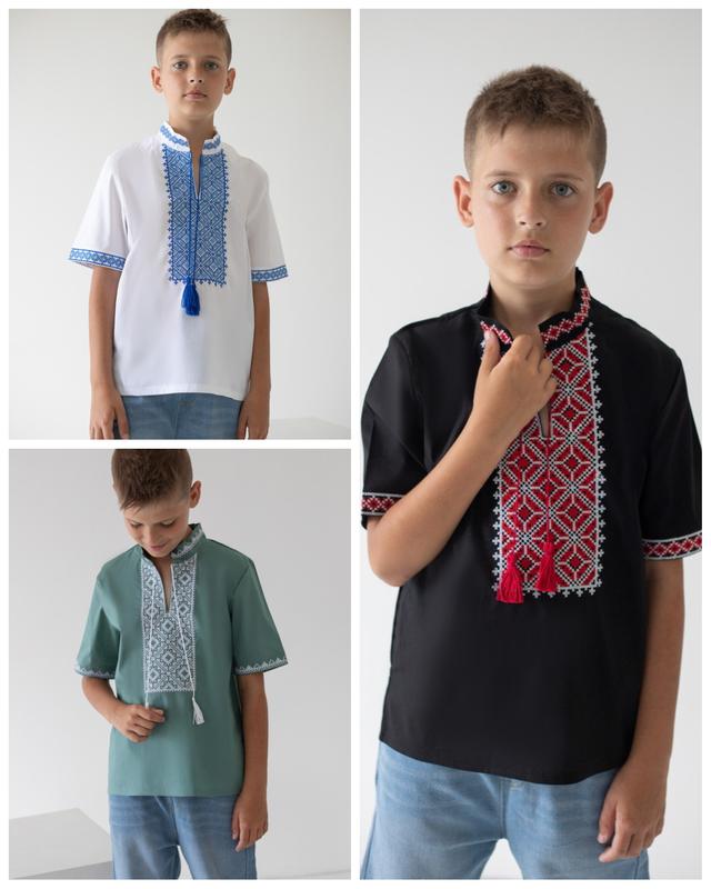 Вышиванка для парня, подростковая вышиванка, вышитая рубашка с коротким рукавом, подростко...