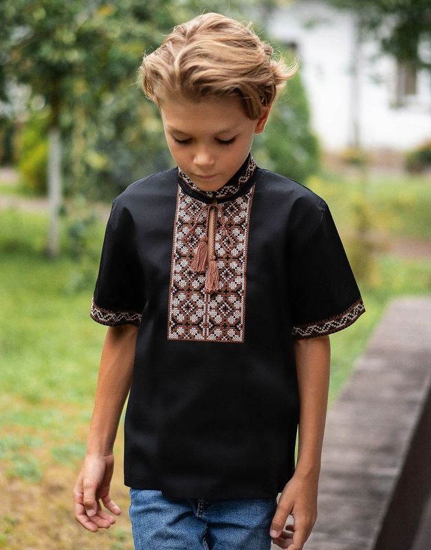 Черная детская вышиванка котоновая, вышитая рубашка для мальчика