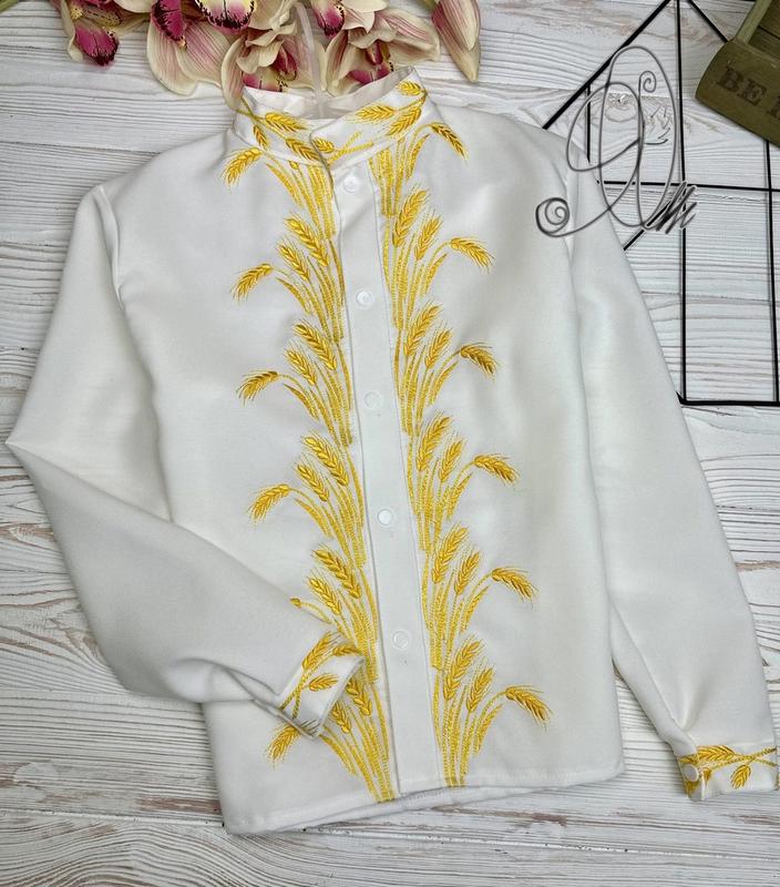 Вишиванка на хлопчика "Довгі Колосоки на кнопках"айворі Опис ✅Арт: 91864 Вир-во: Україна ✅Тка-на: Сорочковий Габардин ✅Додатково: машинна вишивка. ✅ЗВЕРТАЄМО УВАГУ НА ЗАМІРИ! ✅Заміри: довжина/ширина/рукав від плеча. 116-47/37/44 122-50/39/46 128-52/42/49 134-55/43/51 140-57/45/54 146-60/47/56 152- 62/48/59 158- 64/50/60 164- 66/51/61 ✅Можлива похибка у вимірах +- 1/2 см