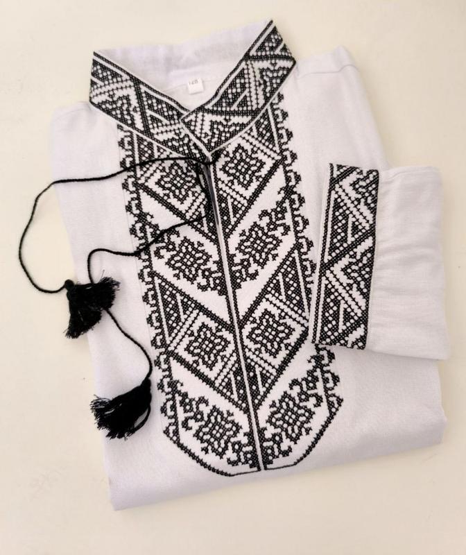 Белая вышиванка с черной вышивкой (домотканое полотно)