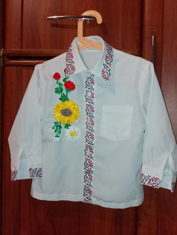 вышиванка детская на 3/4 года в хорошем состоянии, белая, длина 41