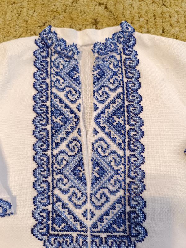 Вышиванка бисерная для мальчика. Длина 42 см, плечи 34, ширина полуоб 34 см, необходимо сделать застежки на ушибах
