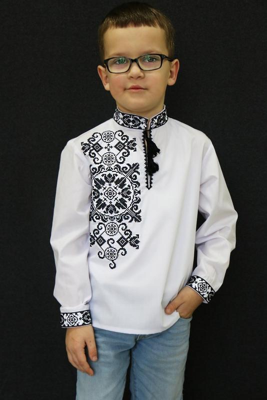 Нова вишиванка на хлопчика. Машинна вишивка. Тканина - сорочкова (70% бавовна, 30% поліестер). Тканина не змінює форму після прання. На манжеті - гудзик Колір тканини - білий Колір вишивки - сіро чорна Розміри в наявності: 128, 134, 140, 146, 152, 158 164, 170 Заміри робилися поверх сорочки, враховуйте припуск. Порівнюйте з замірами вільного одягу, не по тілу. Сорочка повинна легко одягатися через голову, робіть поправку на те, що тканина не тягнеться. Заміри 128 розмір Ширина плечей - 33 см Довжина рукава від плеча - 46 см Ширина під руками - 40 см Довжина - 51 см 134 розмір Ширина плечей - 34 см Довжина рукава від плеча - 48 см Ширина під руками - 41 см Довжина - 54 см 146 розмір Ширина плечей - 35 см Довжина рукава від плеча - 50 см Ширина під руками - 42 см Довжина - 55 см 146 розмір Ширина плечей - 36 см Довжина рукава від плеча - 52 см Ширина під руками - 44 см Довжина - 57 см 152 розмір Ширина плечей - 37 см Довжина рукава від плеча - 54 см Ширина під руками - 46 см Довжина - 59 см 158 розмір Ширина плечей - 37 см Довжина рукава від плеча - 56 см Ширина під руками - 48 см Довжина - 60 см 164 розмір Ширина плечей - 38 см Довжина рукава від плеча - 58 см Ширина під руками - 50 см Довжина - 61 см 170 розмір Ширина плечей - 40 см Довжина рукава від плеча - 60 см Ширина під руками - 52 см Довжина - 62 см Відправка Новою поштою, Укрпоштою, Міст. Оплата - наложеним платежем (передплата 100 грн), на карту або можете оформити безпечну покупку через шафу
