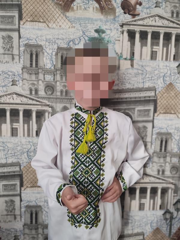 Вышиванка на мальчика 6-7 лет. Тканина -шовк. Вышитая бисером. Не тяжелая. Дже торжественно выглядит. Гарно преться. Замеры по запросу.