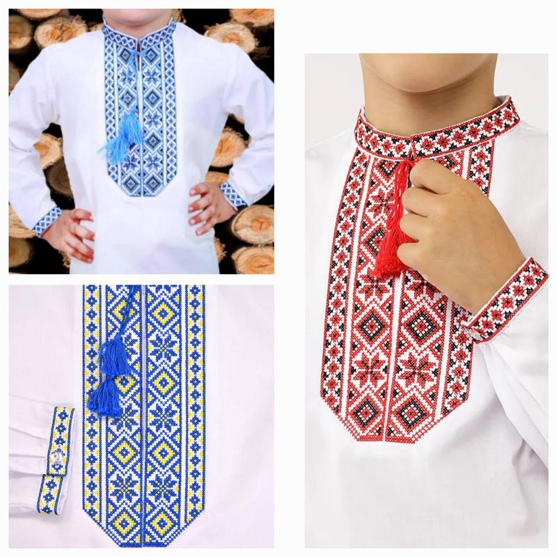 Новая вышиванка на мальчика. Машинная вышивка. Тканина - сорочкова (70% бавовна, 30% поліестер). Ткань не меняет форму после стирки. На манжеті - гудзик Цвет ткани - белый Цвет вышивки - красный, синий, сине-желтый. Размеры в наличии: Синьо голуба вишивка - , 170 Красная вышивка - 164, 170 Желто голубая вышивка - 164, 170 Замеры делалися поверх рубашки, учитывайте припуск. По сравнению с замерами свободногл одежды, не по телу. Рубашка должна легко одеваться через голову, делайте поправку на то, что ткань не тянется. Замеры 164 размер Ширина плечей - 39 см Длина рукава от плеча - 59 см Ширина под руками - 52 см Длина - 63 см 170 размер Ширина плечей - 40 см Длина рукава от плеча - 60 см Ширина под руками - 54 см Длина - 65 см