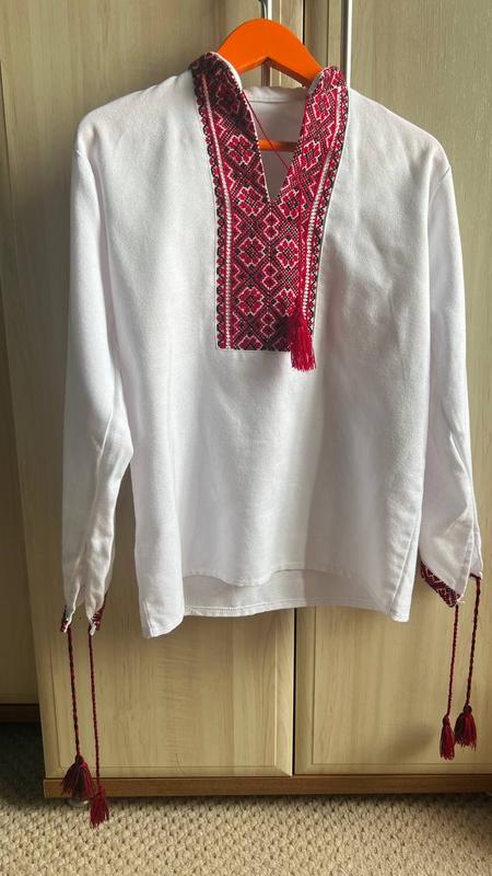 Вишиванка в ідевльному стані, ручна робота, куплена у Кам'янці-Подільському. Одягнута 2 рази, вже маленька. Ідеально на зріст 134, підійде на 120-140. Довжина по спинці 59 см ПоГ 45 см ( напівобʼєм) Рукав 49 см