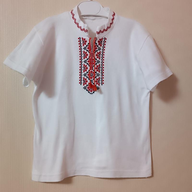 Детская вышиванка с коротким. Тканина: бавовна, трикотаж. Замеры: длина - 45см, плечи - 33см, ПОГ - 37см, рукав - 12см