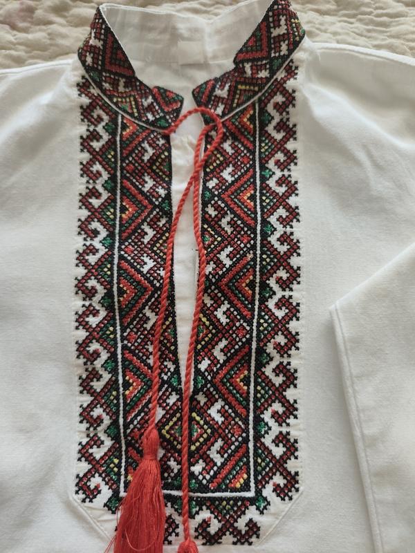 Продаю вышиванку своего сына. Куплена на Закарпатье. Вышитая местными бабушками. Тканина натуральна. Состояние хорошее,но есть нюанс( различные кнопки на манжетах-фото). Длина по переду51 см Длина рукава 46 см Цена 800 грн.