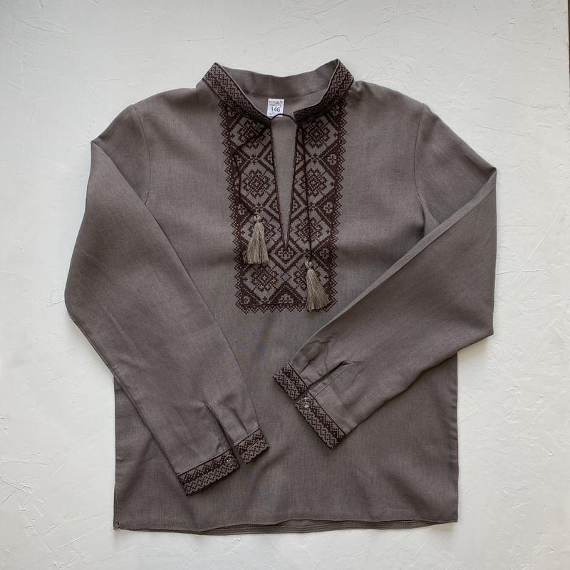 Подростковая вышиванка для мальчика. Тканина: льон Цвет: шоколад Вышивка машинная. Размеры: 146 Доставка и оплата: - Оплата: на карточку или на чеку при получении. - Доставка: Нова пошта, Укрпошта, Justin - Возможна наложенная плата при условии предоплаты 200 грн на карту