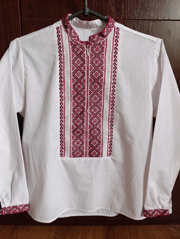 Вышиванка для настоящих козырей, длинным рукавом, ростом 1.36-1.42 на домотканном холсте, объемная, машинная вышивка.