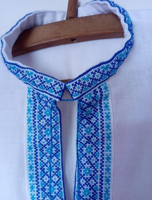 Вышиванка из натуральной ткани ручной работы. Ткань хлопковая натуральная, не тянется. На парня размером 164-170 см Замеры: Плечи 40 см Длина рубашки 62 см Полуузват груди 46 см Рукав 25 см Обхват шеи 36 см Имеется нюанс на последнем фото - разошло по шву сбоку с правой стороны. Учтены в цене.