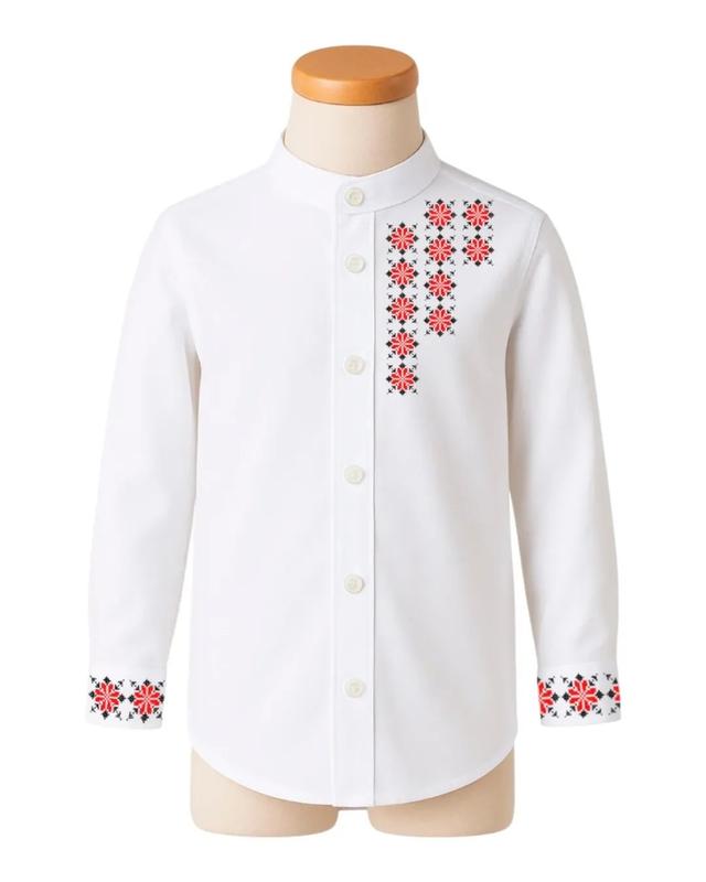 Сорочка вишиванка біла шкільна для хлопчика з червоним орнаментом