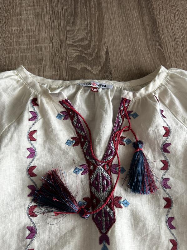 Вишиванка українського бренду Folkmoda. В ідеальному стані. Зроблена з 100% льону , колір вершковий. Льон дуже ніжний до тіла. Не колеться . Розмір -128. Заміри : Довжина по спинці -48 см. Рукав- 49 ПОГ - 40,2