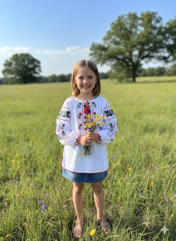Одягали декілька раз, на вік 9-12 років Ця вишиванка, прикрашена яскравим, насиченим орнаментом у стилі польових квітів, стане ідеальною прикрасою на будь-яке свято чи просто для створення особливого настрою.