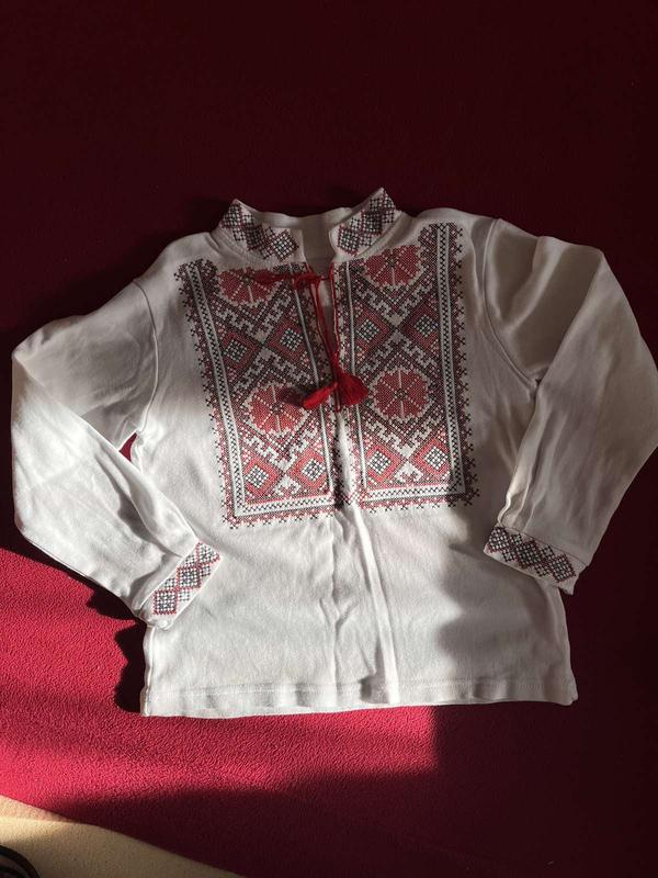 Вышиванка с вышитыми кружевными деталями, размер 128. Длина - 44 см Полуобъем - 38 см Рукава 40 см